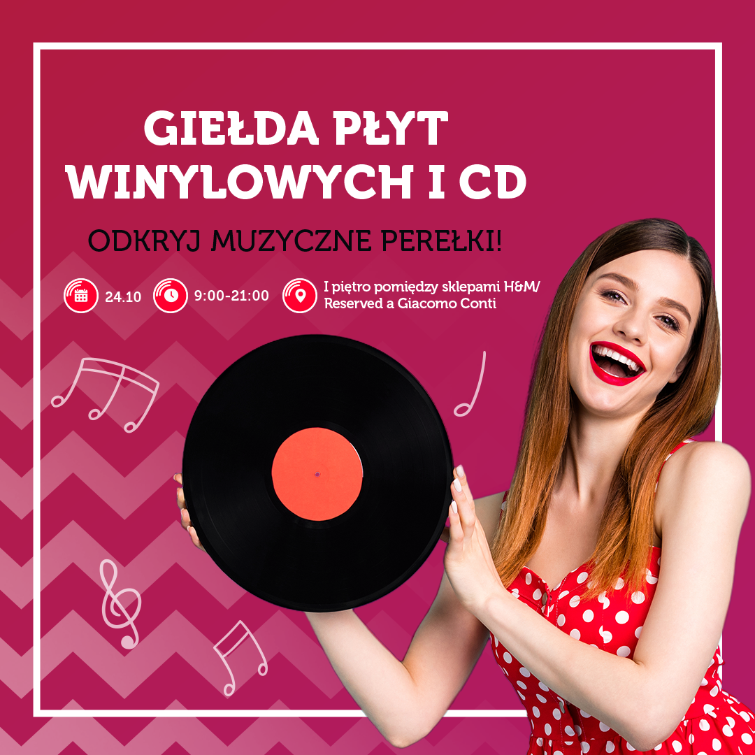 W godzinach 9:00–21:00 na pierwszym piętrze - pomiędzy H&M i Reserved a Giacomo Conti będziecie mogli przeglądać wyjątkowe kolekcje płyt - od najpopularniejszych tytułów po rzadkie i unikatowe wydania.