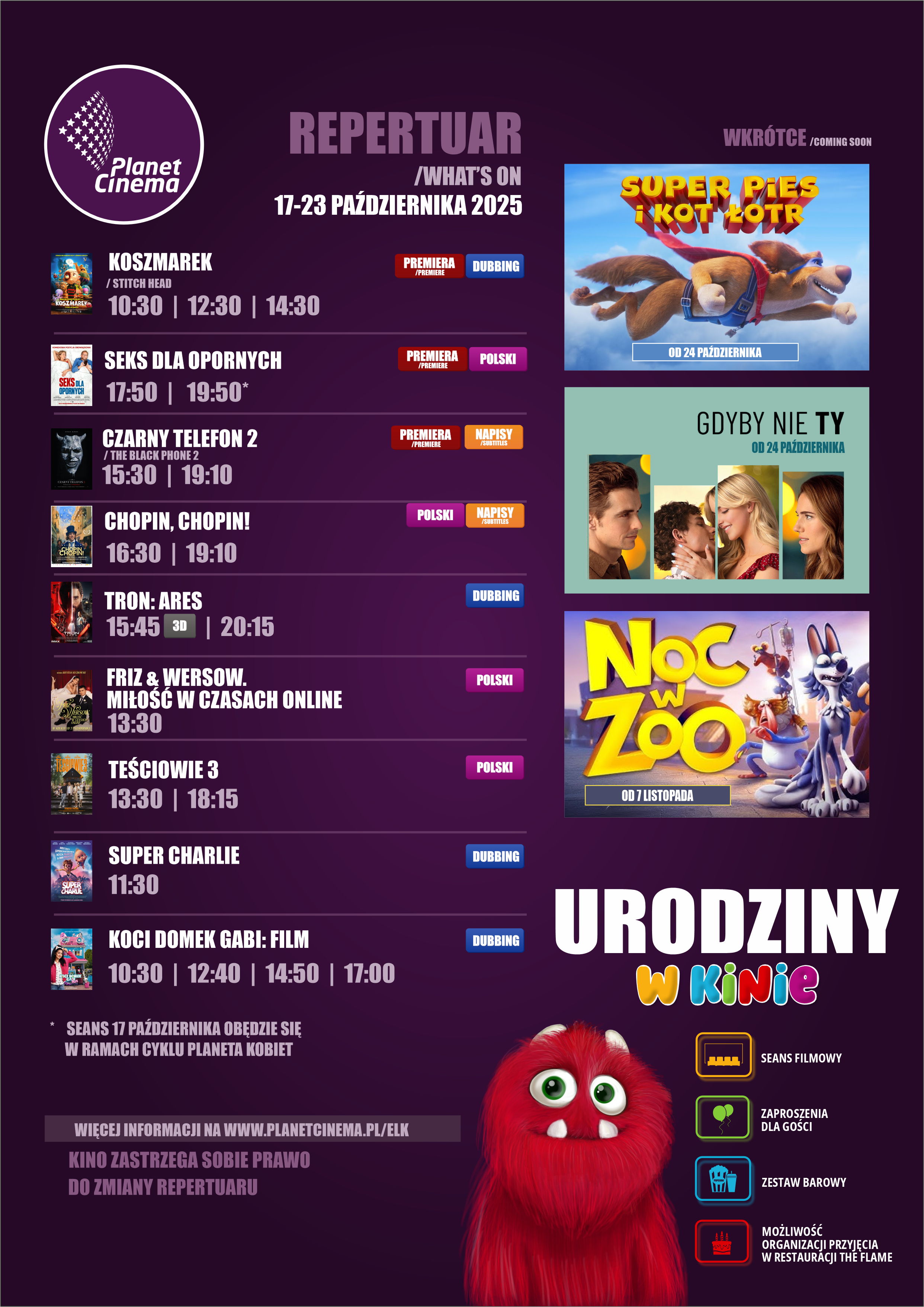 Zapraszamy do zapoznania się z repertuarem na nowy tydzień od 17 października: