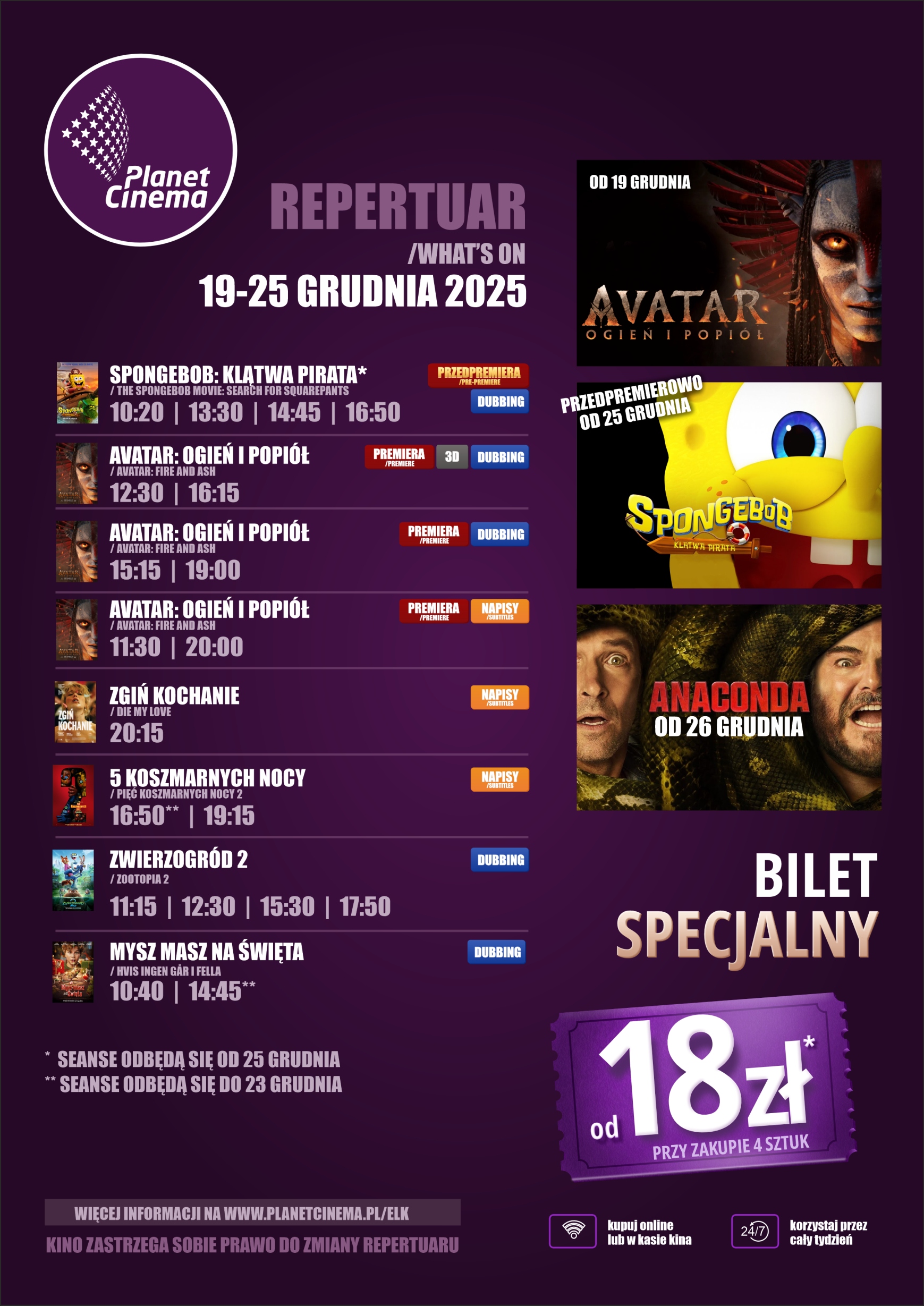 Zapraszamy do zapoznania się z repertuarem na nowy tydzień od 19 grudnia: