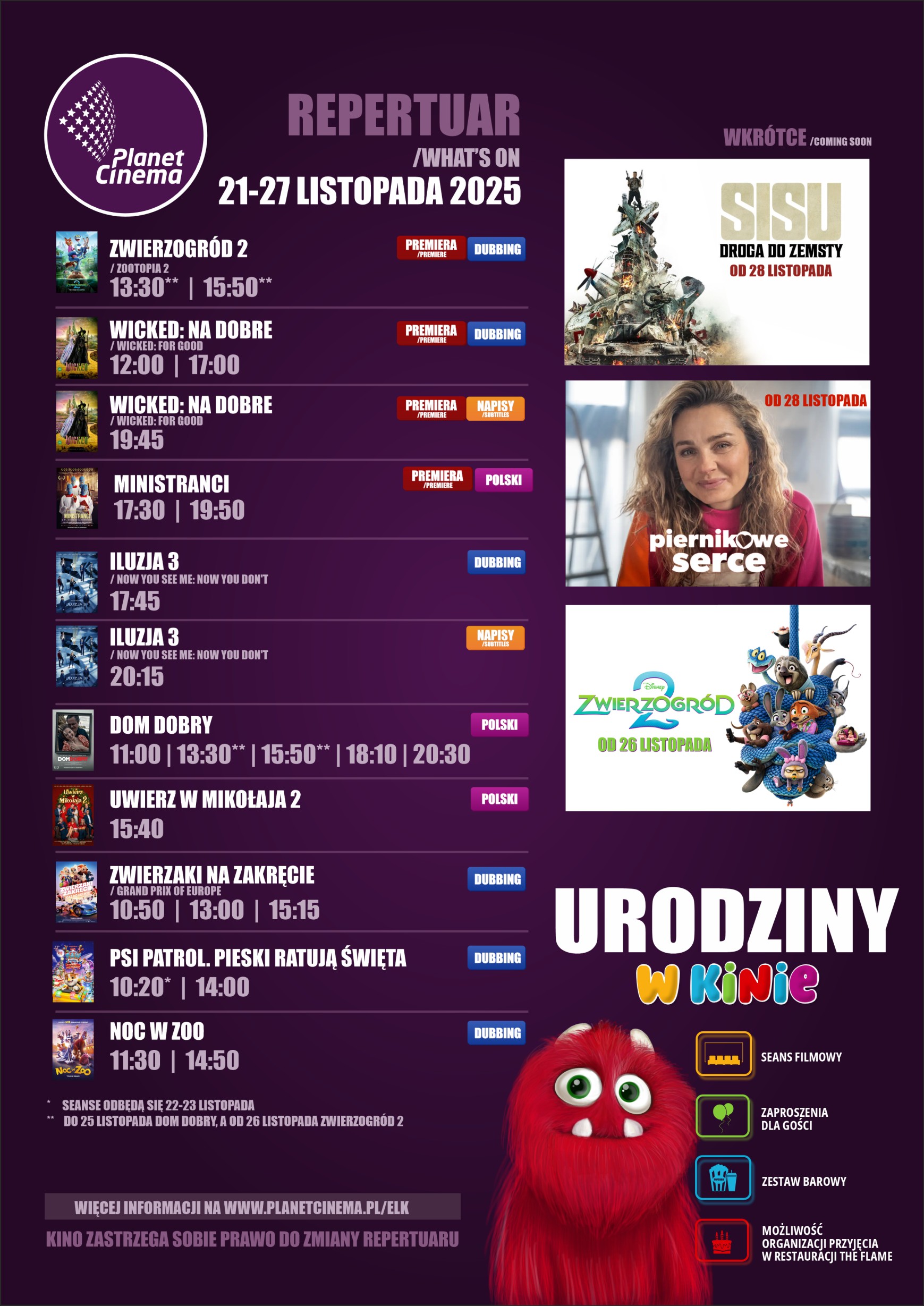 Zapraszamy do zapoznania się z repertuarem na nowy tydzień od 21 listopada: