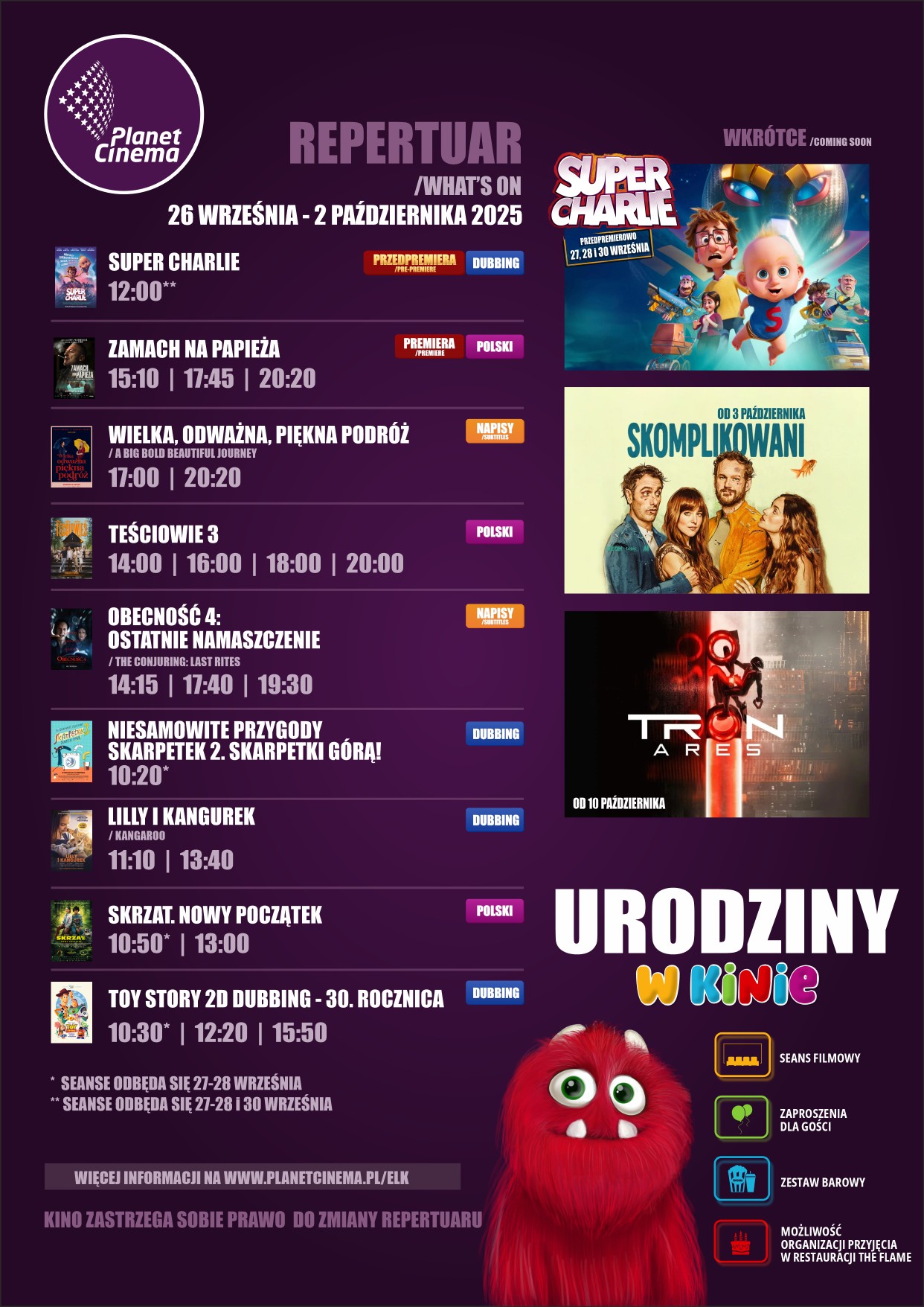 Zapraszamy do zapoznania się z repertuarem na nowy tydzień od 26 września: