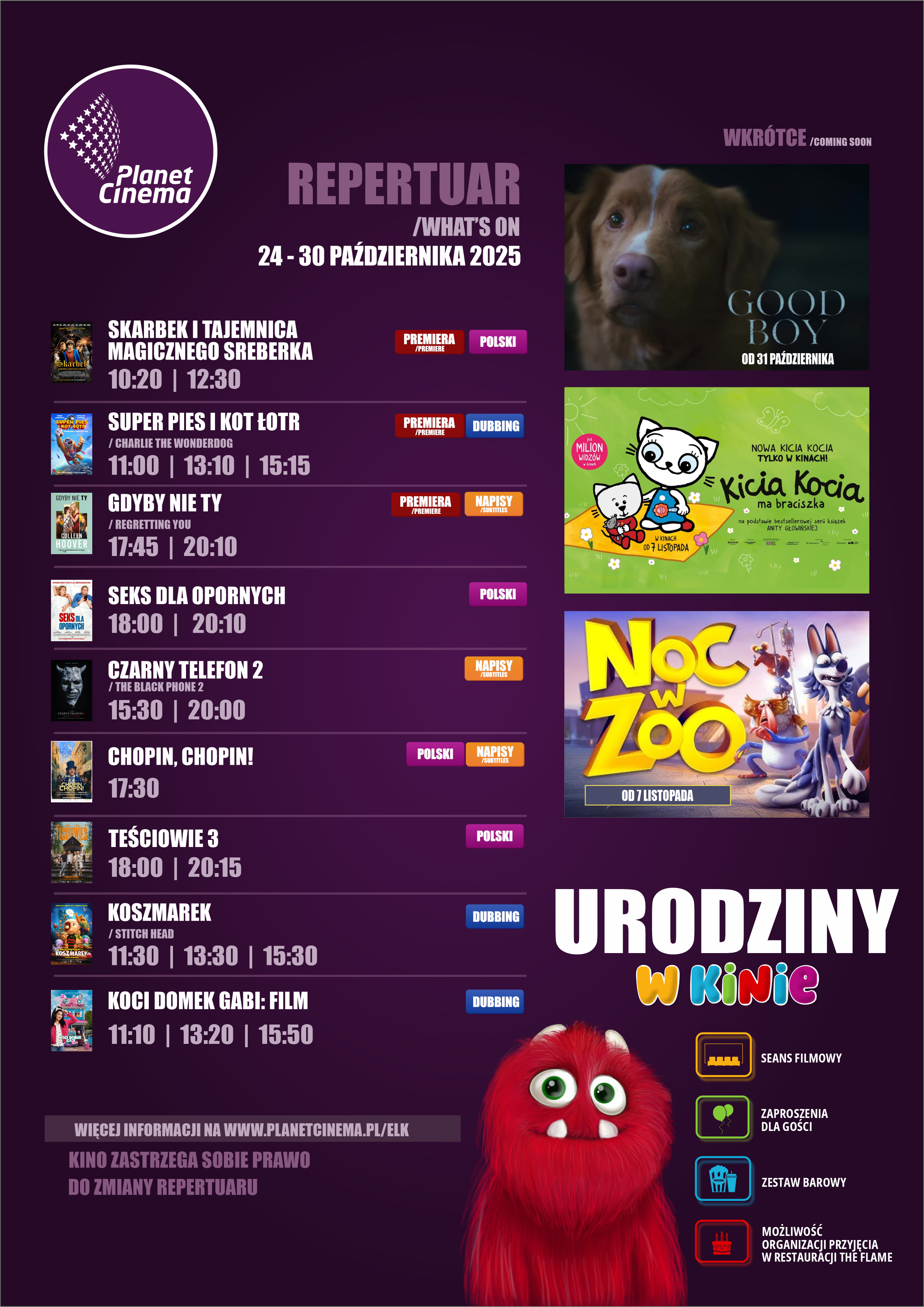 Zapraszamy do zapoznania się z repertuarem na nowy tydzień od 24 października: