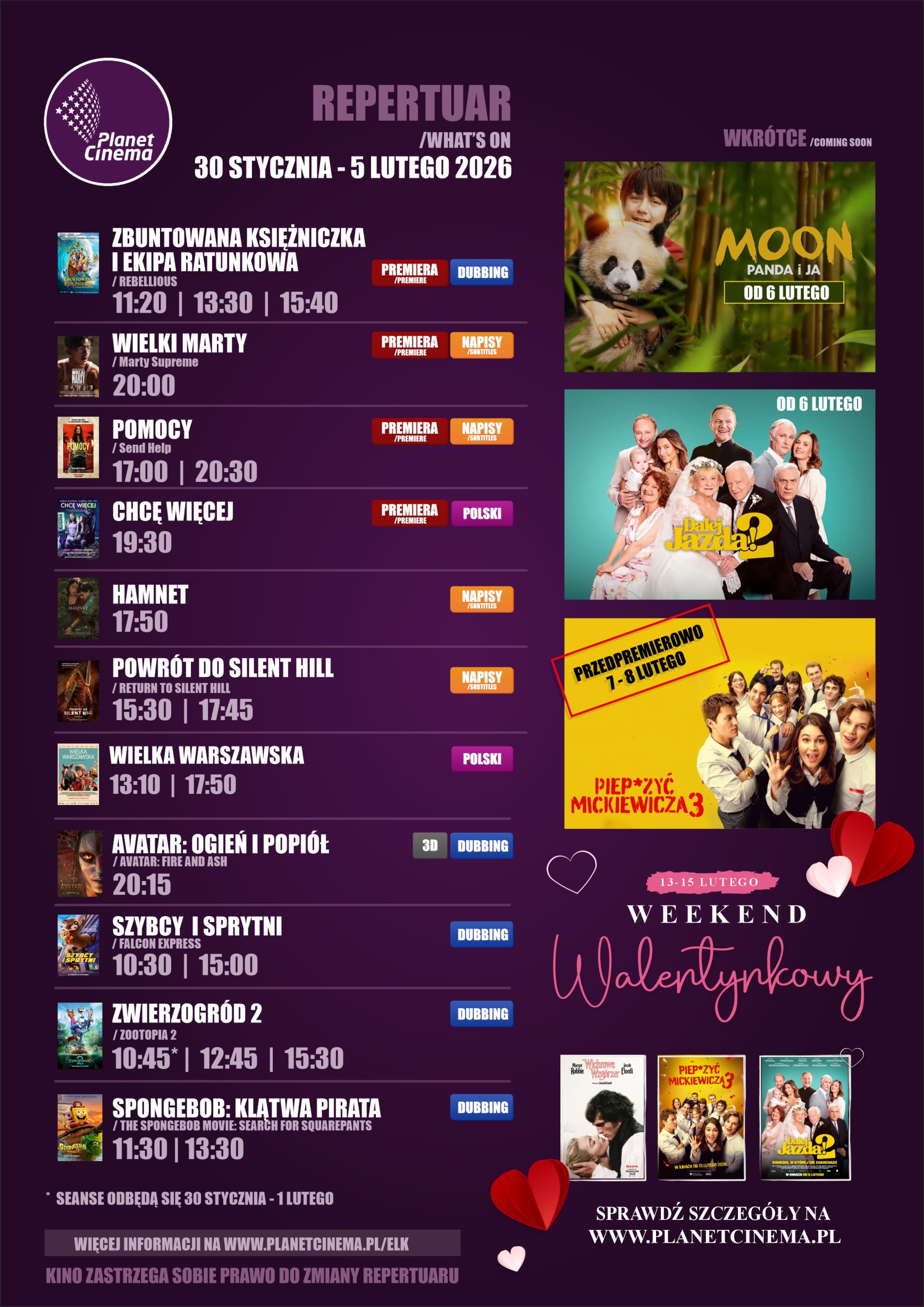 Zapraszamy do zapoznania się z repertuarem na nowy tydzień od 30 stycznia: