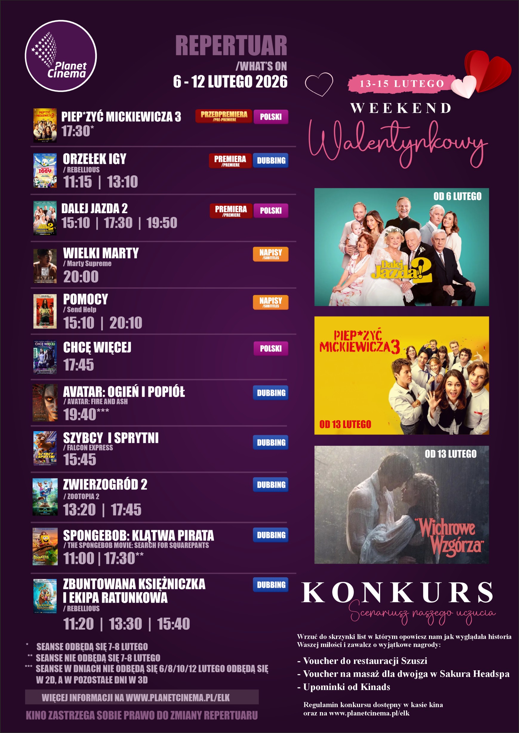 Zapraszamy do zapoznania się z repertuarem na nowy tydzień od 6 lutego: