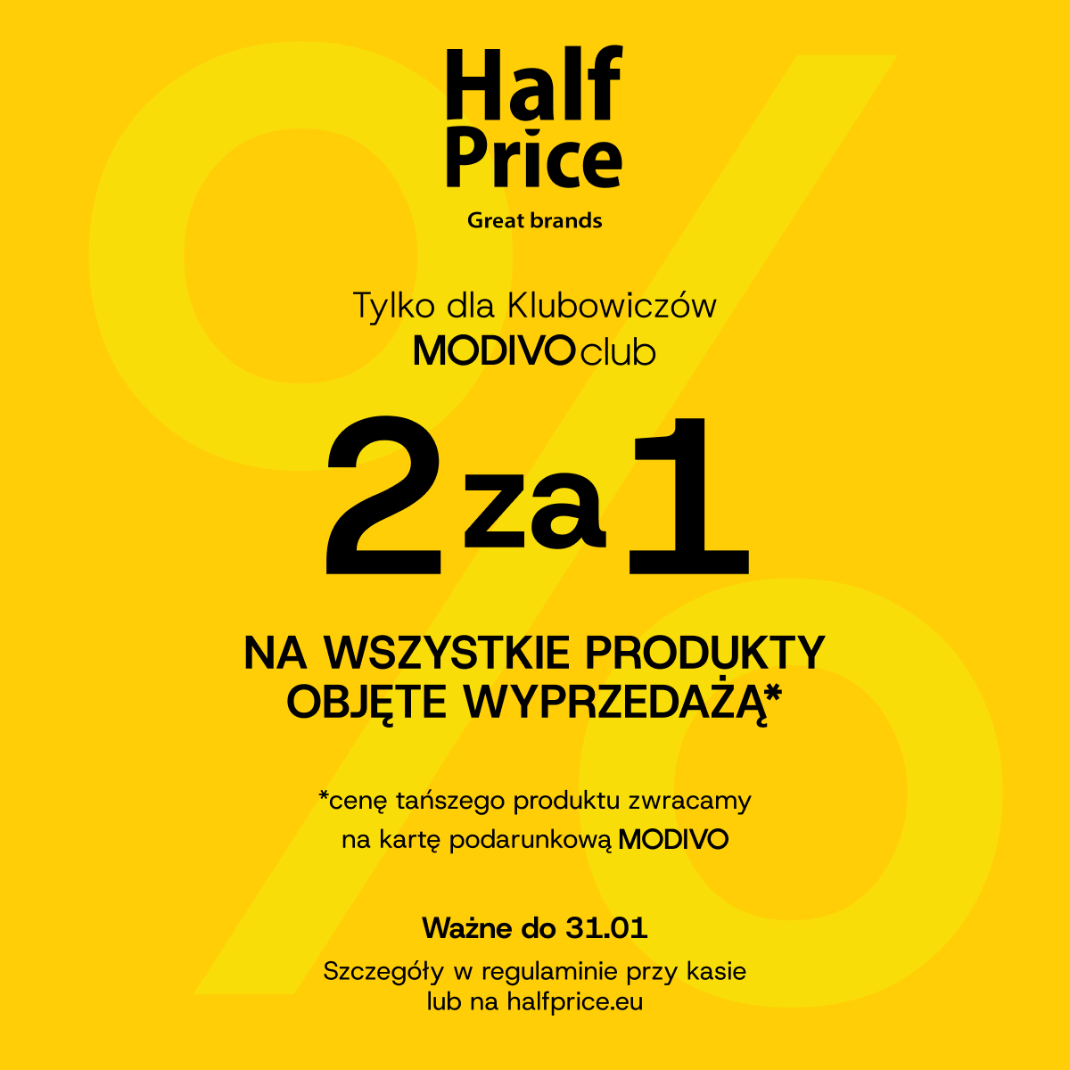 Akcja 2za1 w HalfPrice! Wybierz 2 produkty z wyprzedaży, a zwrot za tańszy z nich otrzymasz na kartę podarunkową MODIVO! Zapoluj na perełki od światowych marek!