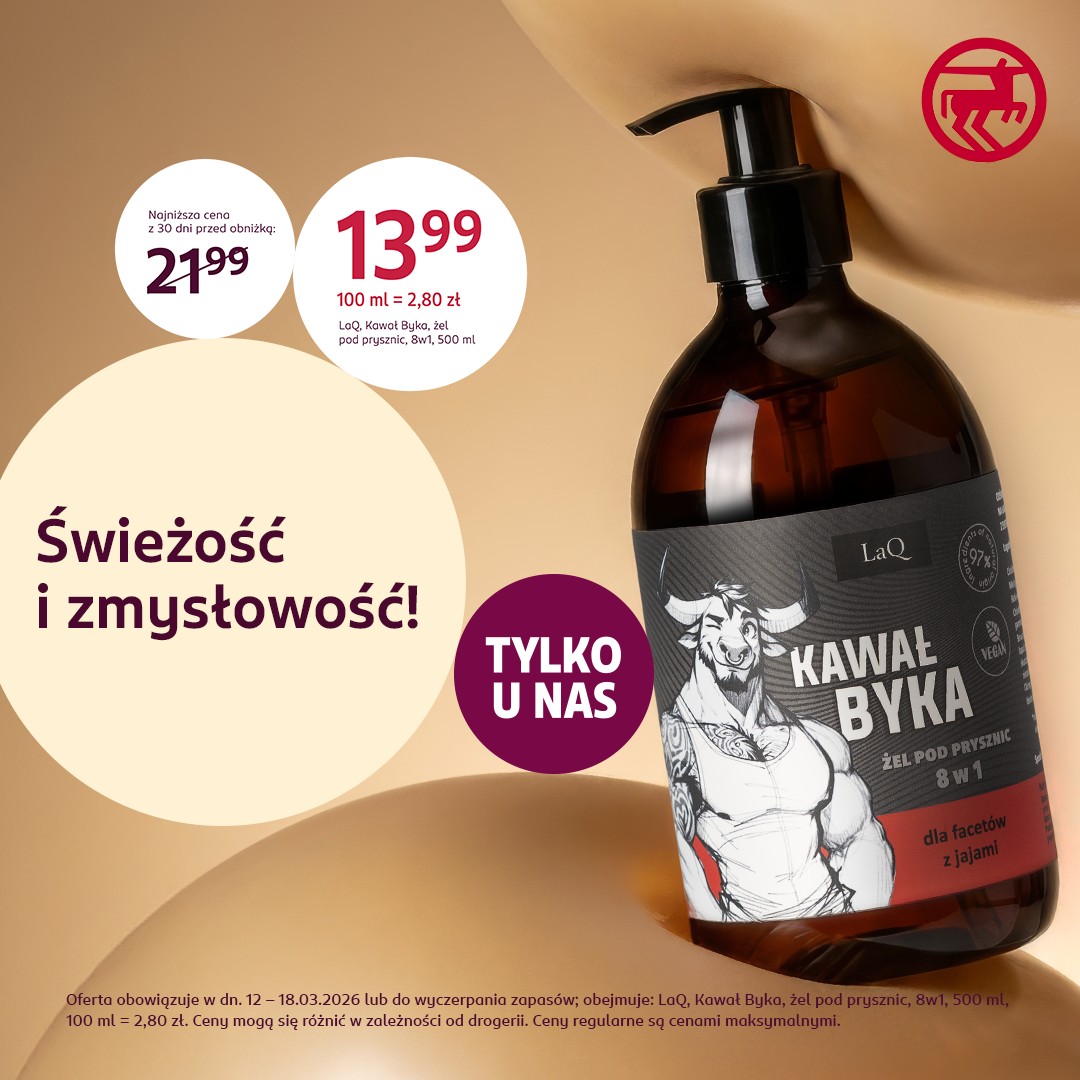 • świeży i zmysłowy żel pod prysznic LAQ Kawał Byka (w tym tygodniu tylko 13,99 zł);